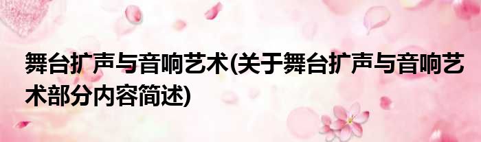 舞台扩声与音响艺术(关于舞台扩声与音响艺术部分内容简述)