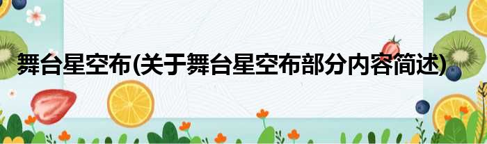 大家好,今天小方来说说一篇关于舞台星空布,关于舞台星空布部分内容简述的文章,那么现在就为大家来简单介绍下,希望对各位小伙伴们有所帮助。