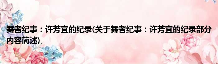 舞者纪事:许芳宜的纪录(关于舞者纪事:许芳宜的纪录部分内容简述)