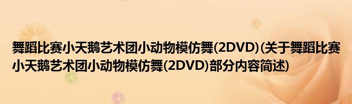 舞蹈比赛小天鹅艺术团小动物模仿舞(2DVD)(关于舞蹈比赛小天鹅艺术团小动物模仿舞(2DVD)部分内容简述)