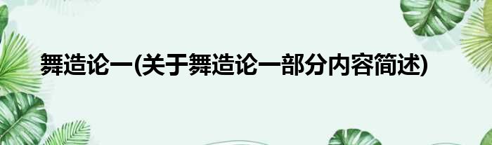大家好,今天小方来说说一篇关于舞造论一,关于舞造论一部分内容简述的文章,那么现在就为大家来简单介绍下,希望对各位小伙伴们有所帮助。