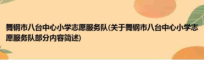 舞钢市八台中心小学志愿服务队(关于舞钢市八台中心小学志愿服务队部分内容简述)