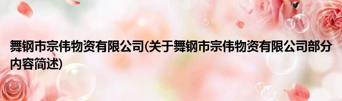 舞钢市宗伟物资有限公司(关于舞钢市宗伟物资有限公司部分内容简述)