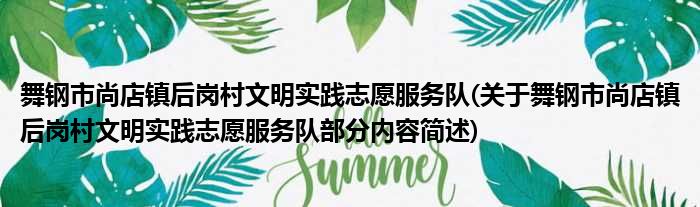 舞钢市尚店镇后岗村文明实践志愿服务队(关于舞钢市尚店镇后岗村文明实践志愿服务队部分内容简述)