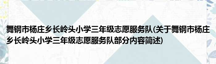 舞钢市杨庄乡长岭头小学三年级志愿服务队(关于舞钢市杨庄乡长岭头小学三年级志愿服务队部分内容简述)