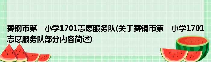 舞钢市第一小学1701志愿服务队(关于舞钢市第一小学1701志愿服务队部分内容简述)