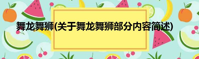 舞龙舞狮(关于舞龙舞狮部分内容简述)
