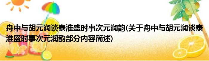 舟中与胡元润谈泰淮盛时事次元润韵(关于舟中与胡元润谈泰淮盛时事次元润韵部分内容简述)