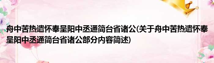舟中苦热遣怀奉呈阳中丞通简台省诸公(关于舟中苦热遣怀奉呈阳中丞通简台省诸公部分内容简述)