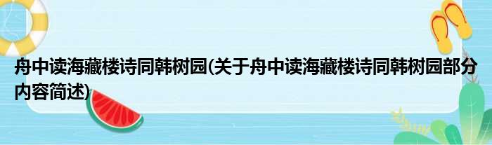 舟中读海藏楼诗同韩树园(关于舟中读海藏楼诗同韩树园部分内容简述)