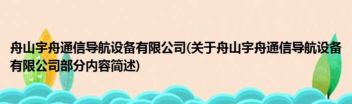 舟山宇舟通信导航设备有限公司(关于舟山宇舟通信导航设备有限公司部分内容简述)