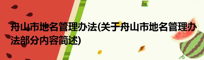 舟山市地名管理办法(关于舟山市地名管理办法部分内容简述)