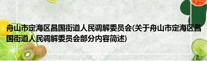 舟山市定海区昌国街道人民调解委员会(关于舟山市定海区昌国街道人民调解委员会部分内容简述)