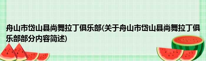 舟山市岱山县尚舞拉丁俱乐部(关于舟山市岱山县尚舞拉丁俱乐部部分内容简述)