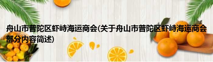 舟山市普陀区虾峙海运商会(关于舟山市普陀区虾峙海运商会部分内容简述)