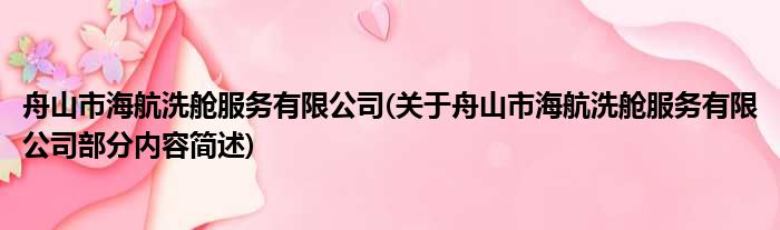 舟山市海航洗舱服务有限公司(关于舟山市海航洗舱服务有限公司部分内容简述)