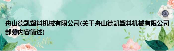 舟山德凯塑料机械有限公司(关于舟山德凯塑料机械有限公司部分内容简述)