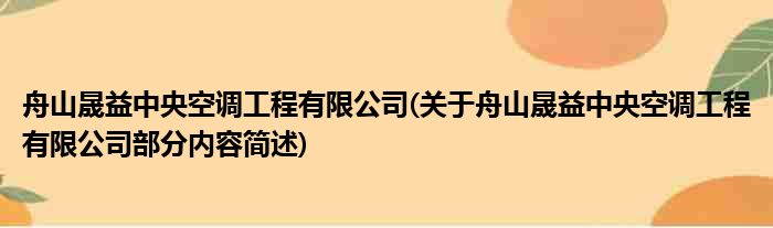 舟山晟益中央空调工程有限公司(关于舟山晟益中央空调工程有限公司部分内容简述)