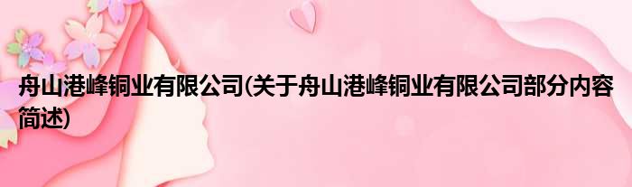 舟山港峰铜业有限公司(关于舟山港峰铜业有限公司部分内容简述)