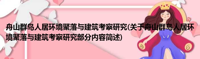 舟山群岛人居环境聚落与建筑考察研究(关于舟山群岛人居环境聚落与建筑考察研究部分内容简述)