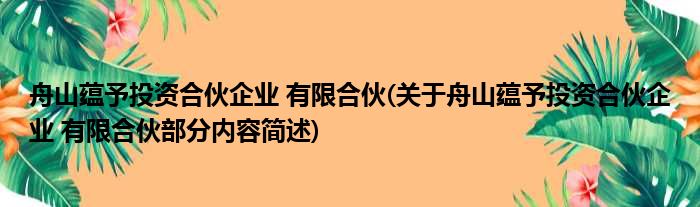 舟山蕴予投资合伙企业 有限合伙(关于舟山蕴予投资合伙企业 有限合伙部分内容简述)