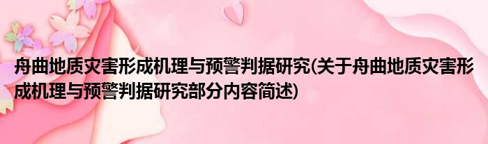舟曲地质灾害形成机理与预警判据研究(关于舟曲地质灾害形成机理与预警判据研究部分内容简述)