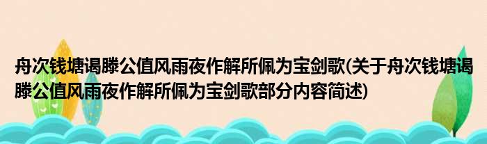 舟次钱塘谒滕公值风雨夜作解所佩为宝剑歌(关于舟次钱塘谒滕公值风雨夜作解所佩为宝剑歌部分内容简述)
