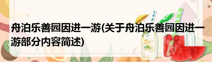 舟泊乐善园因进一游(关于舟泊乐善园因进一游部分内容简述)