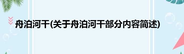 大家好,今天小方来说说一篇关于舟泊河干,关于舟泊河干部分内容简述的文章,那么现在就为大家来简单介绍下,希望对各位小伙伴们有所帮助。
