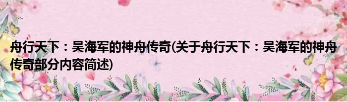 大家好,今天小方来说说一篇关于舟行天下:吴海军的神舟传奇,关于舟行天下:吴海军的神舟传奇部分内容简述的文章,那么现在就为大家来简单介绍下,希望对各位小伙伴们有所帮助。