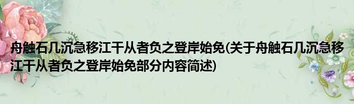 舟触石几沉急移江干从者负之登岸始免(关于舟触石几沉急移江干从者负之登岸始免部分内容简述)