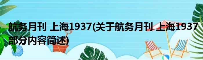 航务月刊 上海1937(关于航务月刊 上海1937部分内容简述)