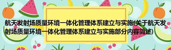 航天发射场质量环境一体化管理体系建立与实施(关于航天发射场质量环境一体化管理体系建立与实施部分内容简述)