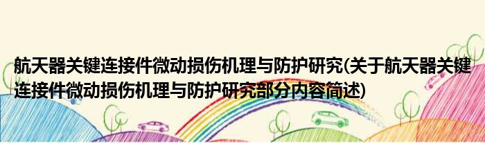 航天器关键连接件微动损伤机理与防护研究(关于航天器关键连接件微动损伤机理与防护研究部分内容简述)