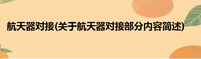 大家好,今天小方来说说一篇关于航天器对接,关于航天器对接部分内容简述的文章,那么现在就为大家来简单介绍下,希望对各位小伙伴们有所帮助。