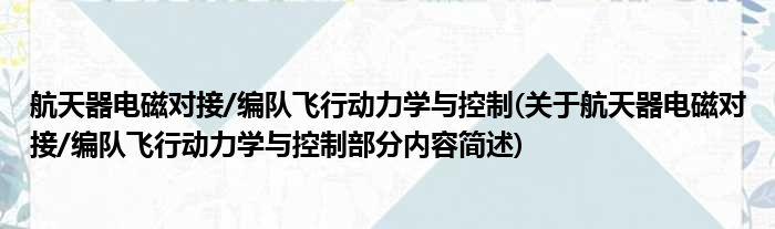 航天器电磁对接/编队飞行动力学与控制(关于航天器电磁对接/编队飞行动力学与控制部分内容简述)
