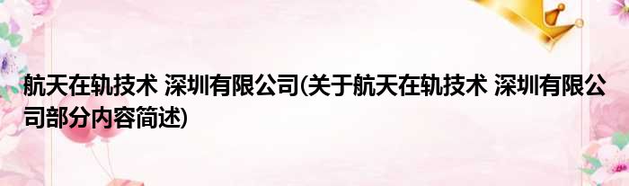 航天在轨技术 深圳有限公司(关于航天在轨技术 深圳有限公司部分内容简述)