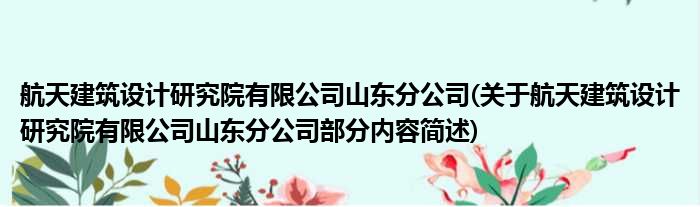 航天建筑设计研究院有限公司山东分公司(关于航天建筑设计研究院有限公司山东分公司部分内容简述)