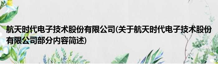 航天时代电子技术股份有限公司(关于航天时代电子技术股份有限公司部分内容简述)