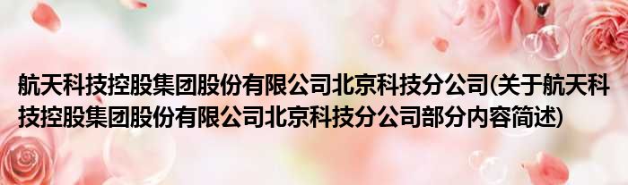 航天科技控股集团股份有限公司北京科技分公司(关于航天科技控股集团股份有限公司北京科技分公司部分内容简述)
