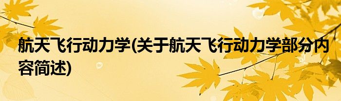 航天飞行动力学(关于航天飞行动力学部分内容简述)
