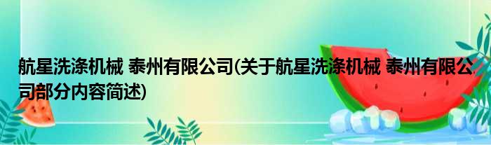 航星洗涤机械 泰州有限公司(关于航星洗涤机械 泰州有限公司部分内容简述)