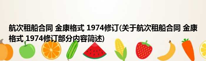 航次租船合同 金康格式 1974修订(关于航次租船合同 金康格式 1974修订部分内容简述)