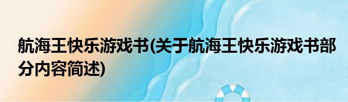航海王快乐游戏书(关于航海王快乐游戏书部分内容简述)