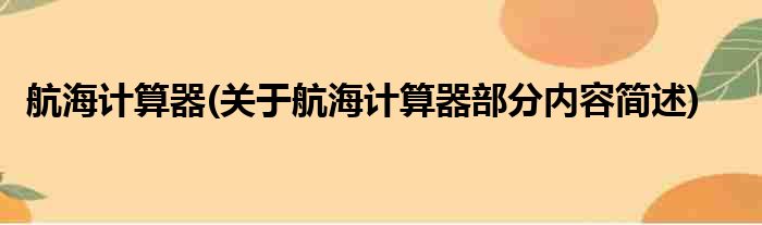 航海计算器(关于航海计算器部分内容简述)