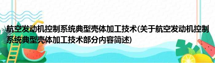 航空发动机控制系统典型壳体加工技术(关于航空发动机控制系统典型壳体加工技术部分内容简述)
