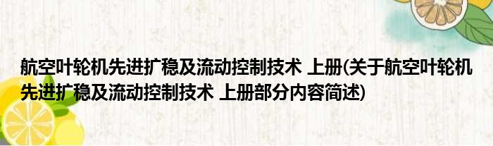航空叶轮机先进扩稳及流动控制技术 上册(关于航空叶轮机先进扩稳及流动控制技术 上册部分内容简述)