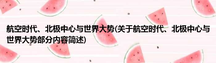 航空时代、北极中心与世界大势(关于航空时代、北极中心与世界大势部分内容简述)