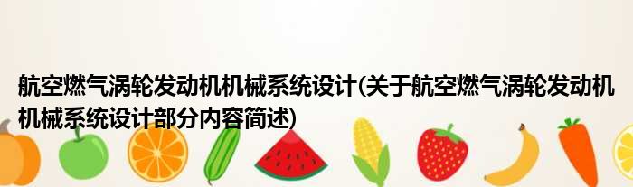 航空燃气涡轮发动机机械系统设计(关于航空燃气涡轮发动机机械系统设计部分内容简述)