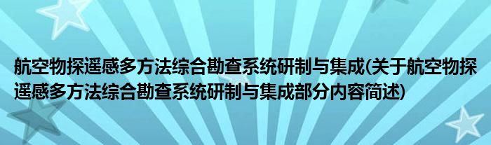 航空物探遥感多方法综合勘查系统研制与集成(关于航空物探遥感多方法综合勘查系统研制与集成部分内容简述)
